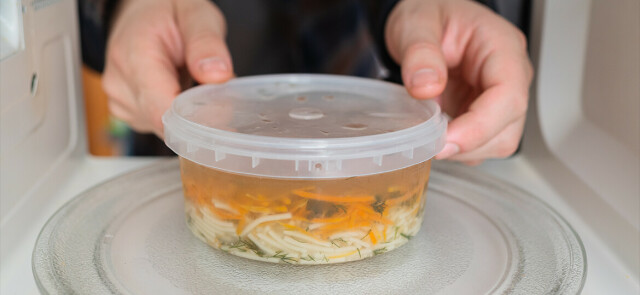 nie podgrzewaj jedzenia w jednorazowych pojemnikach po dostawie (lepiej przełożyć do szkła/ceramiki)